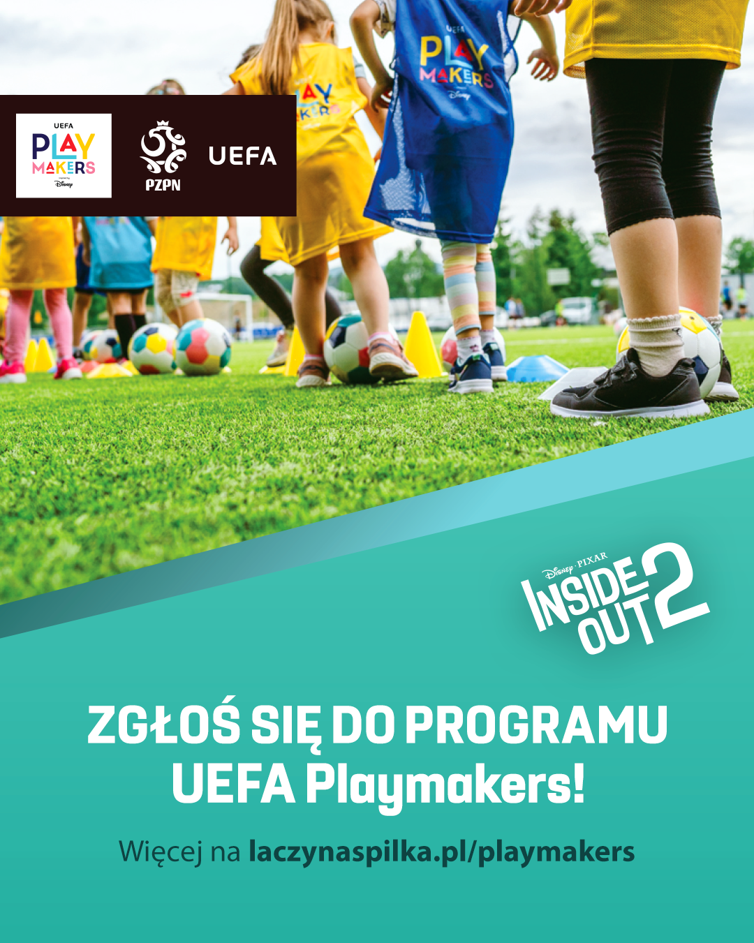 Polski Związek Piłki Nożnej ogłasza nabór dla ośrodków do kolejnej edycji programu UEFA Playmakers. Wejdź do świata piłki nożnej, dzięki magii bajek Disneya. Formularz zgłoszeniowy oraz regulamin znajdziesz tutaj: https://laczynaspilka.pl/playmakers