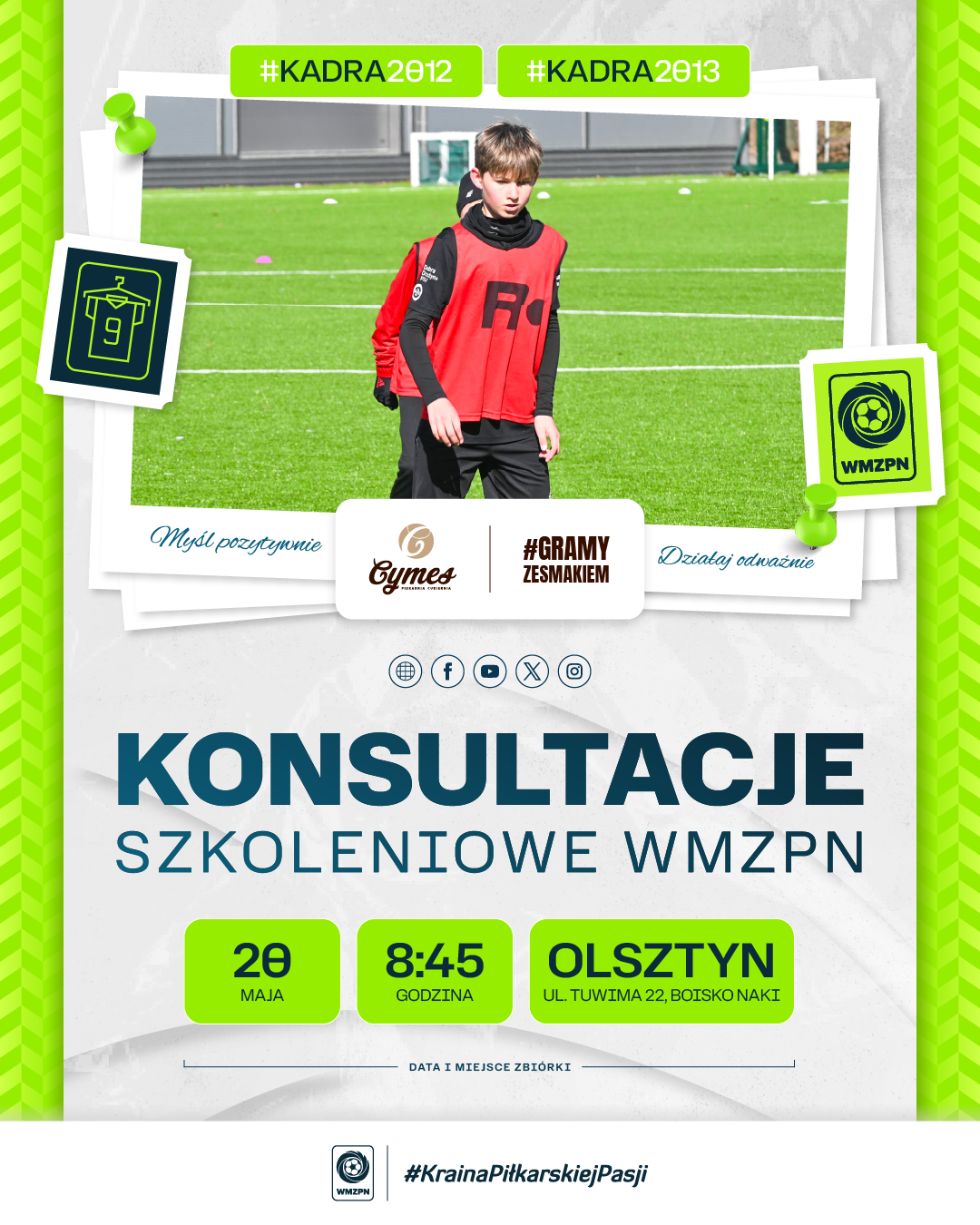 Zbiórka zawodników dnia 20 maja br. (wtorek) o godzinie 8:45, boisko Naki przy ul. Tuwima 22 w Olsztynie.