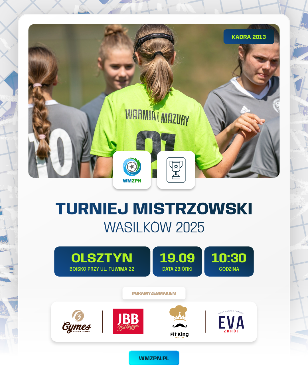 Zbiórka zawodniczek dnia 19 września br. (piątek) o godzinie 10:30, boisko Naki przy ul. Tuwima 22 w Olsztynie.