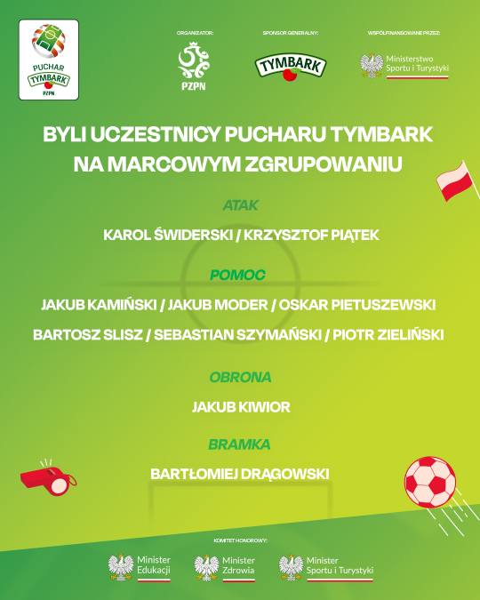 Wśród powołanych na marcowe zgrupowanie jest Jakub Kamiński – wieloletni reprezentant Polski i były uczestnik Pucharu Tymbark. Piłkarz wziął udział w spotkaniu ze zwycięzcami XXV edycji turnieju, które jest nagrodą główną dla najlepszych drużyn. Dla młodych zawodników takie spotkanie to nie tylko wyróżnienie, ale także wyraźny impuls do dalszego rozwoju. To również dowód, że ścieżka rozpoczęta w Pucharze Tymbark może prowadzić aż do reprezentacji Polski.