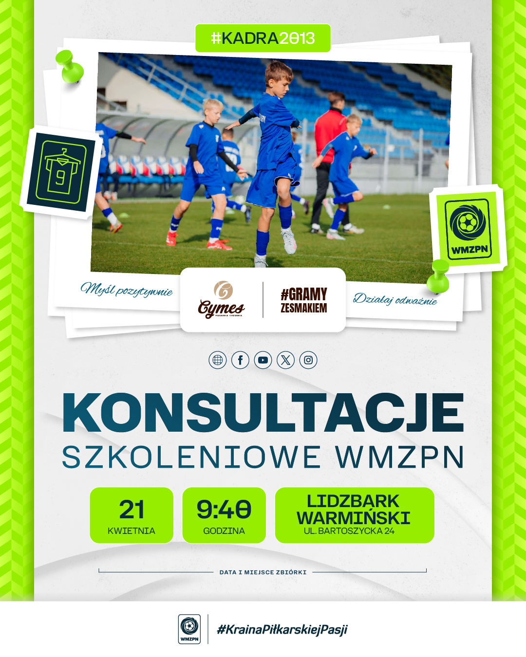 21 kwietnia w Lidzbarku Warmińskim odbędzie się konsultacja szkoleniowa Kadry WMZPN rocznika 2013.